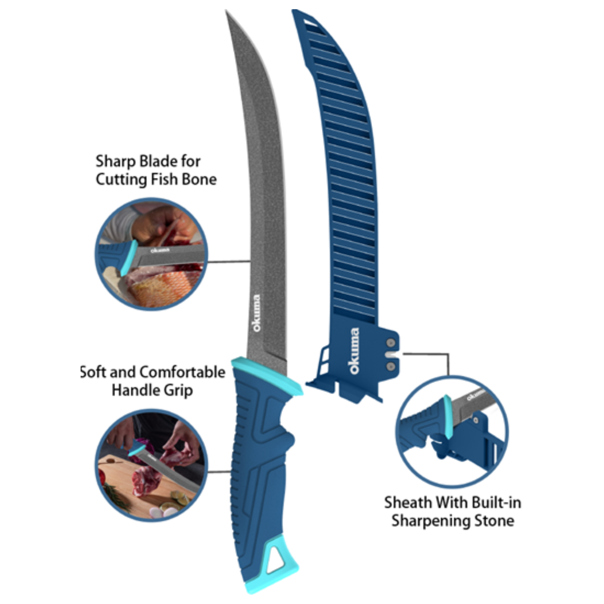 سكين تقطيع 9 بوصة + غلاف | OKUMA FISHING: معدات متينة وموثوقة للصيادين في جميع أنحاء العالم