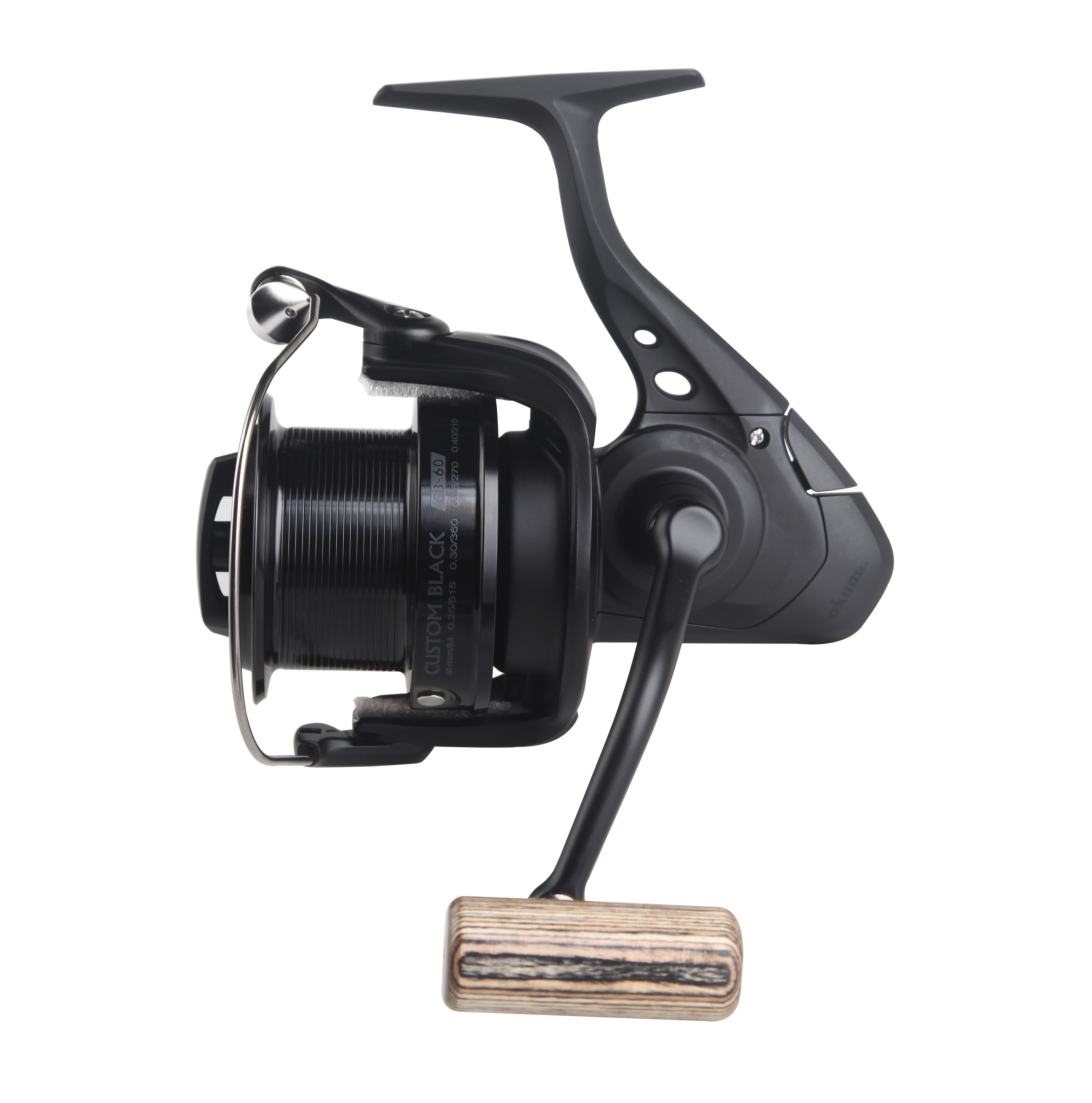 Okuma Custom Black Spinning reels dilengkapi dengan spool alum anodisasi potong mesin, spool kontrol garis LCS membuat pelemparan lebih halus. Reel ini cocok untuk memancing ikan karper dan dikirim dengan spool grafit ekstra sebagai sistem cadangan atau untuk membawa ukuran garis yang berbeda.